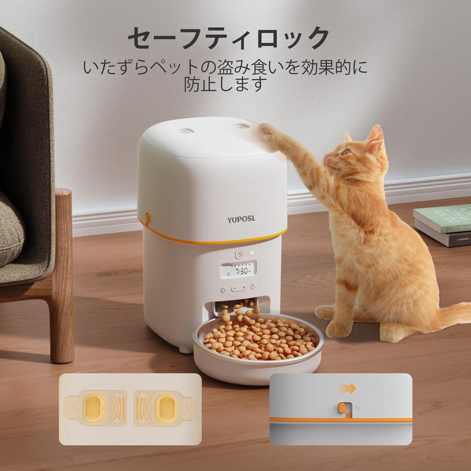 Yuposl 自動給餌器 猫 中小型犬用 1日6食 定時定量 2L容量 自動餌やり機 タイマー式 餌の鮮度保持 2WAY給電 無制限置き場所 水洗い可能 ステンレス製ボウル 手動給餌 設定・お手入れ簡単 ホワイト