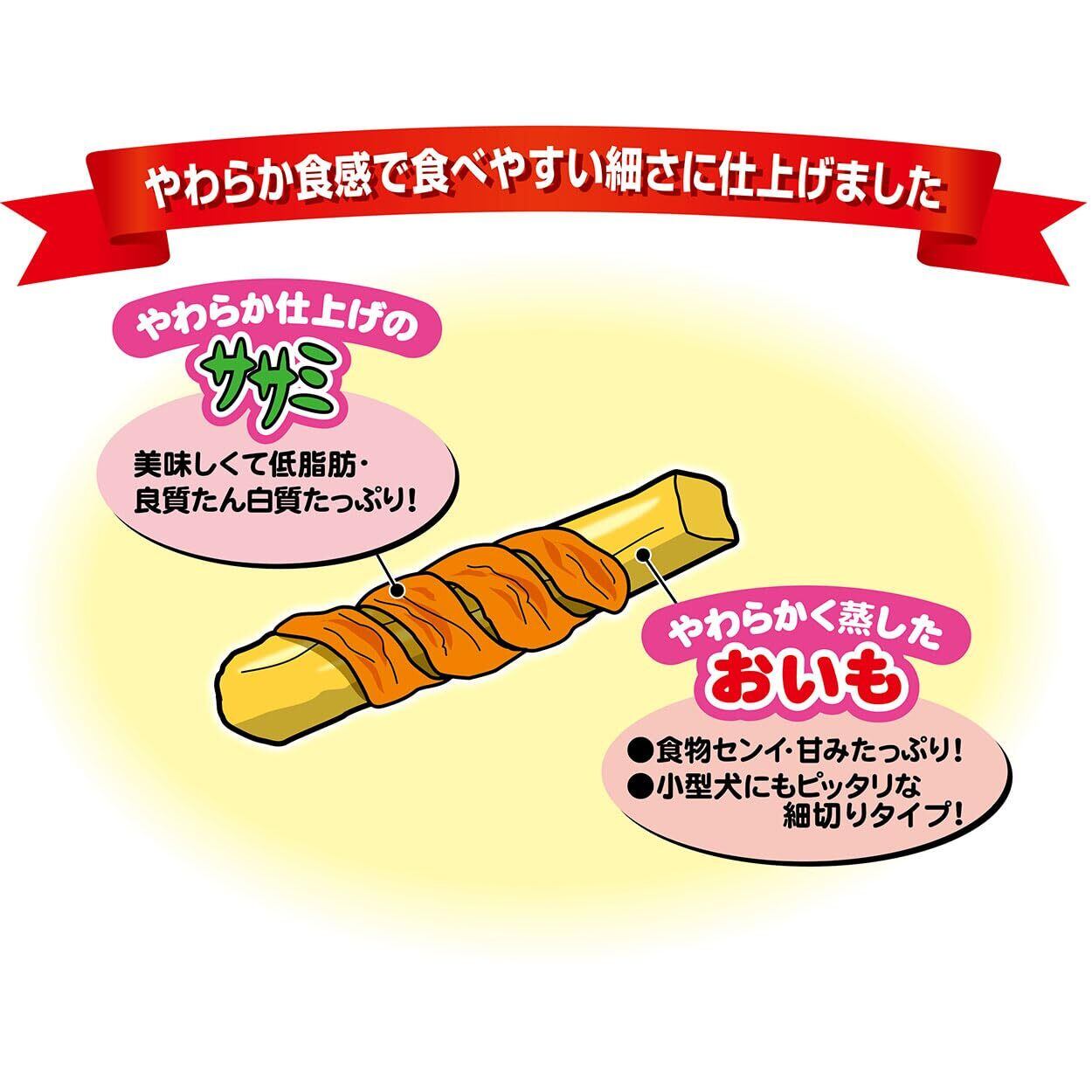 ササミと食物センイたっぷりなおいもの体にやさしい組合せ!小型犬も食べやすいやわらか細切りおいも使用!お得な大容量タイプ。
