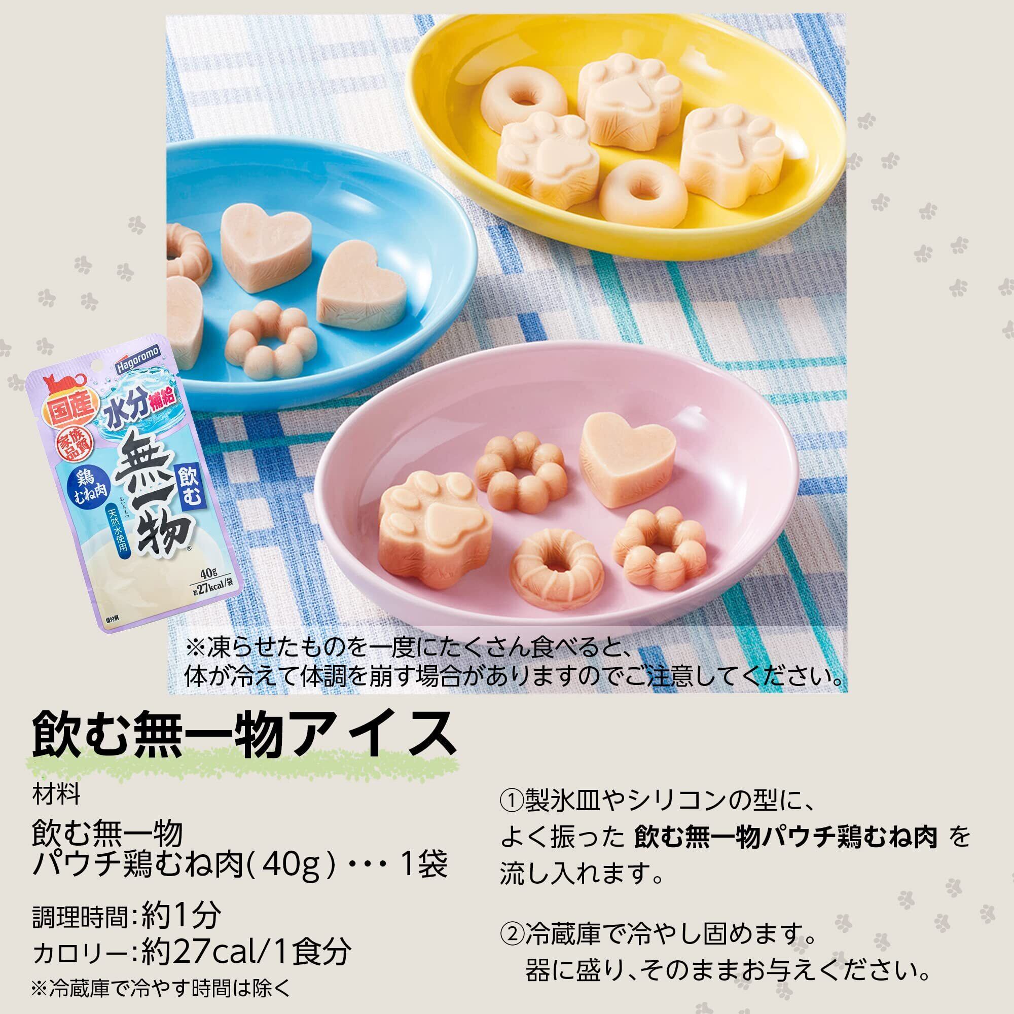 食品添加物を加えていない製品です。素材本来の旨みを味わいながら自然に水分補給ができるよう、素材と天然水だけで仕上げたキャットフードです。