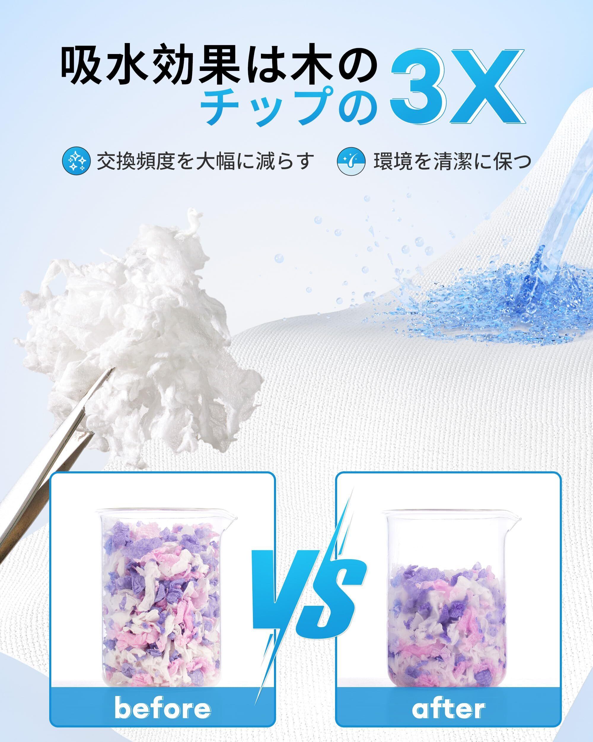 【優れた通気性と消臭性】吸水効果は木のチップの3倍!原木由来の消臭成分が含まれているため、安心して使用できる上、菌の増殖も防ぎます。10日以上にわたって消臭効果を持ち、優れた吸湿性があるため、冬は暖かい巣材として、夏は快適に使用できます。