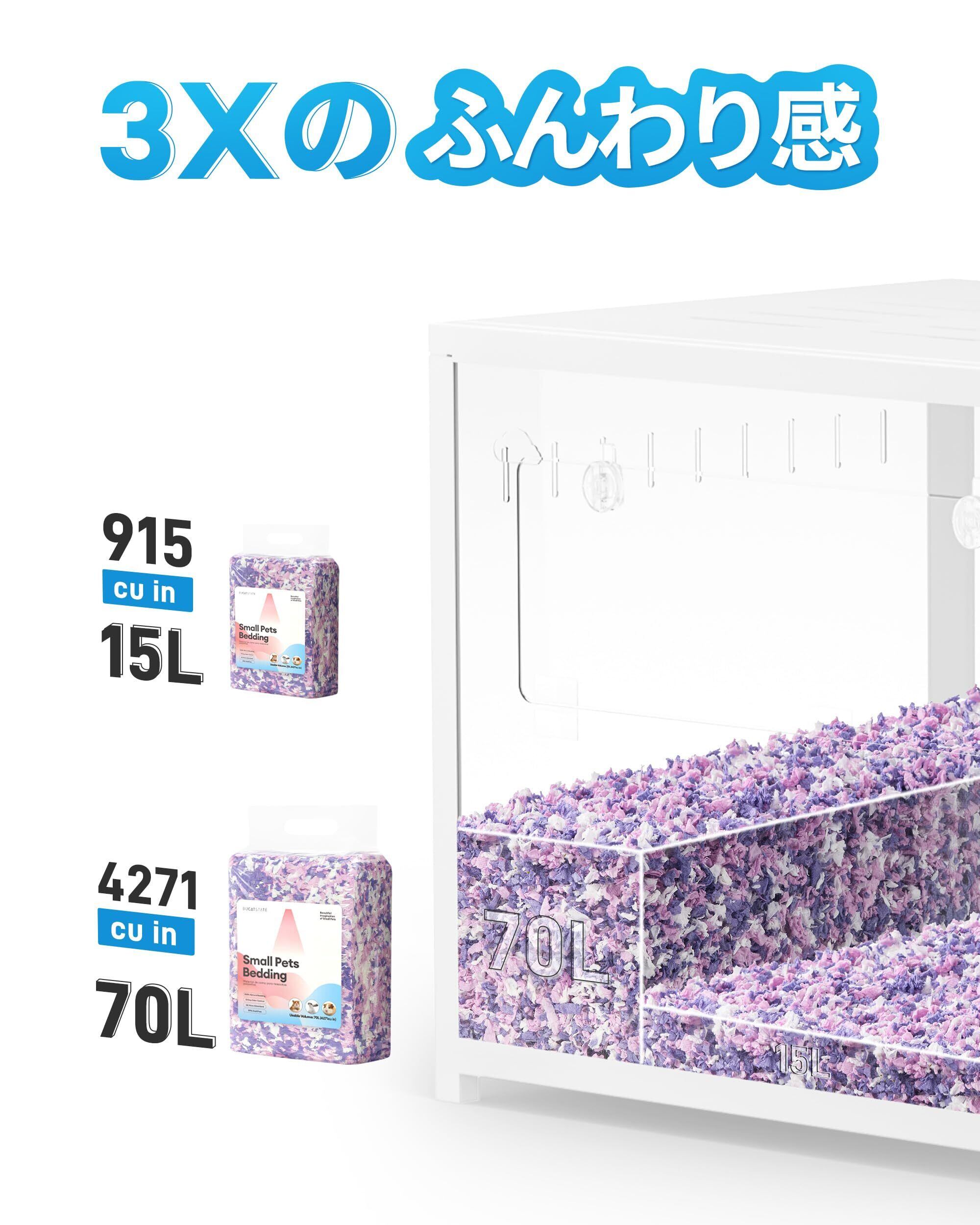 【2022最新】BUCATSTATE ハムスター 床材 紙 無塵【圧縮パッケージ 大容量】ハムスター マット 広葉樹マット 小動物 床材 雲の上で眠るような柔らかさ 超ふわふわ クラウドシリーズ 天然素材 紙 消臭 快適 うさぎ マット ハムスター モルモット ウサギ ハリネズミ フクロモモンガ 小動物用 床材 70L [紫+白] | カウカウ物販