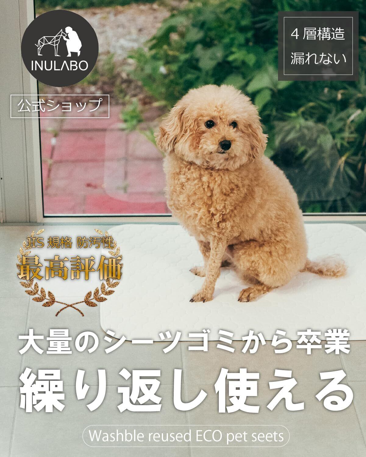【おトイレがよく見える】 ワンちゃんの排泄物には、病気のサインがいっぱい。INULABOの洗えるシーツは、よく見える真っ白なシートなので、愛犬の変化にすぐに気づくことができます。また、ペット用品の多くは実用性にばかり着目され、デザイン性を軽視される傾向があります。INULABOの防水マットは、リビングに敷いても「トイレ感」がない純白に仕上げています。防汚性も抜群なので、お手入れもとっても簡単です。
