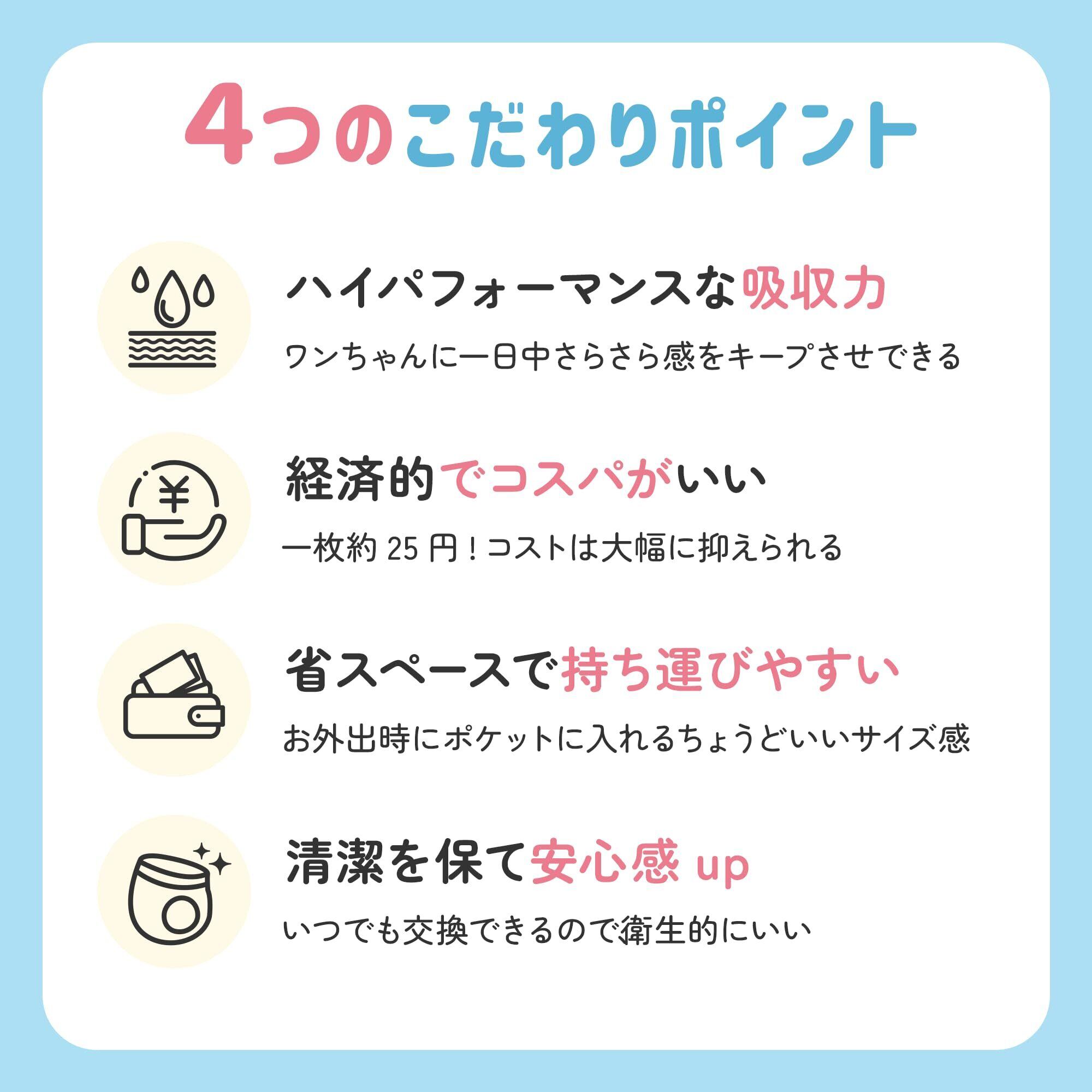 【様々なシーンで大活躍】大切なワンちゃんのおもらしや、マーキング、介護、病中病後、生理に!シニア犬には介護用、パピーにはトイレトレーニングとして。長距離のお出かけやドライブにもお使いいただけます。