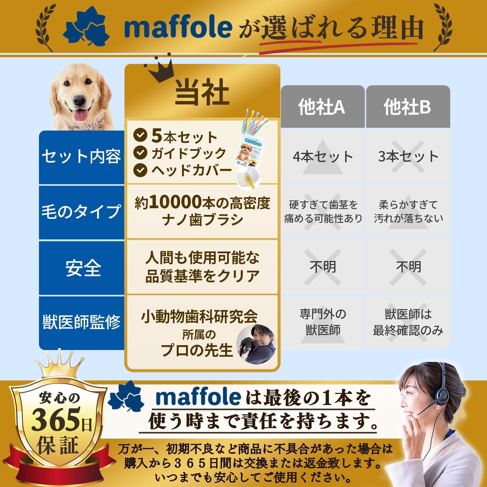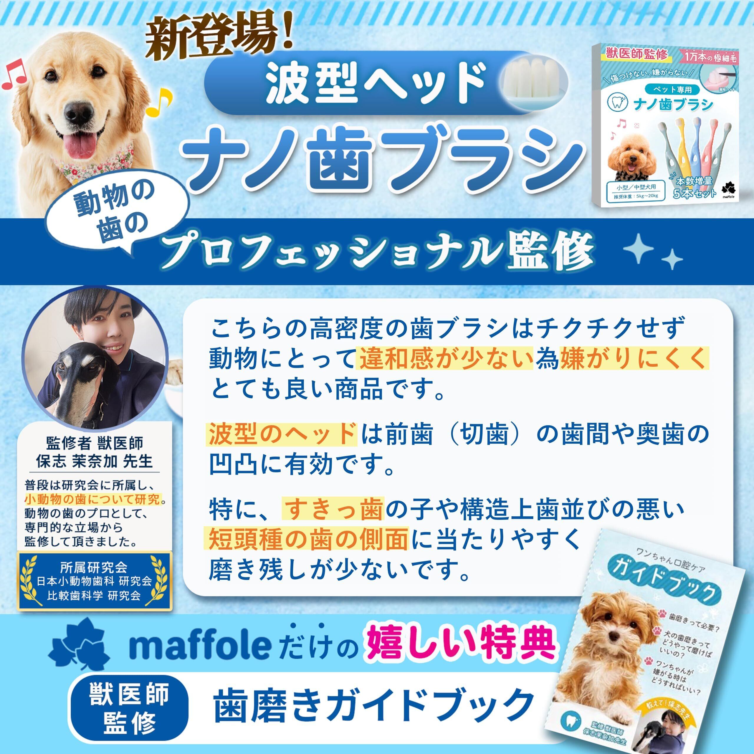 犬 歯ブラシ 小型犬 【小動物歯科研究医が監修x1万本の極細毛】 ナノコーティング 歯磨き ガイド付 奥まで届くカーブ 抗菌 抗ウイルス 体重5kg-20kg 毛高10mm maffole (波型ヘッド カラフル)